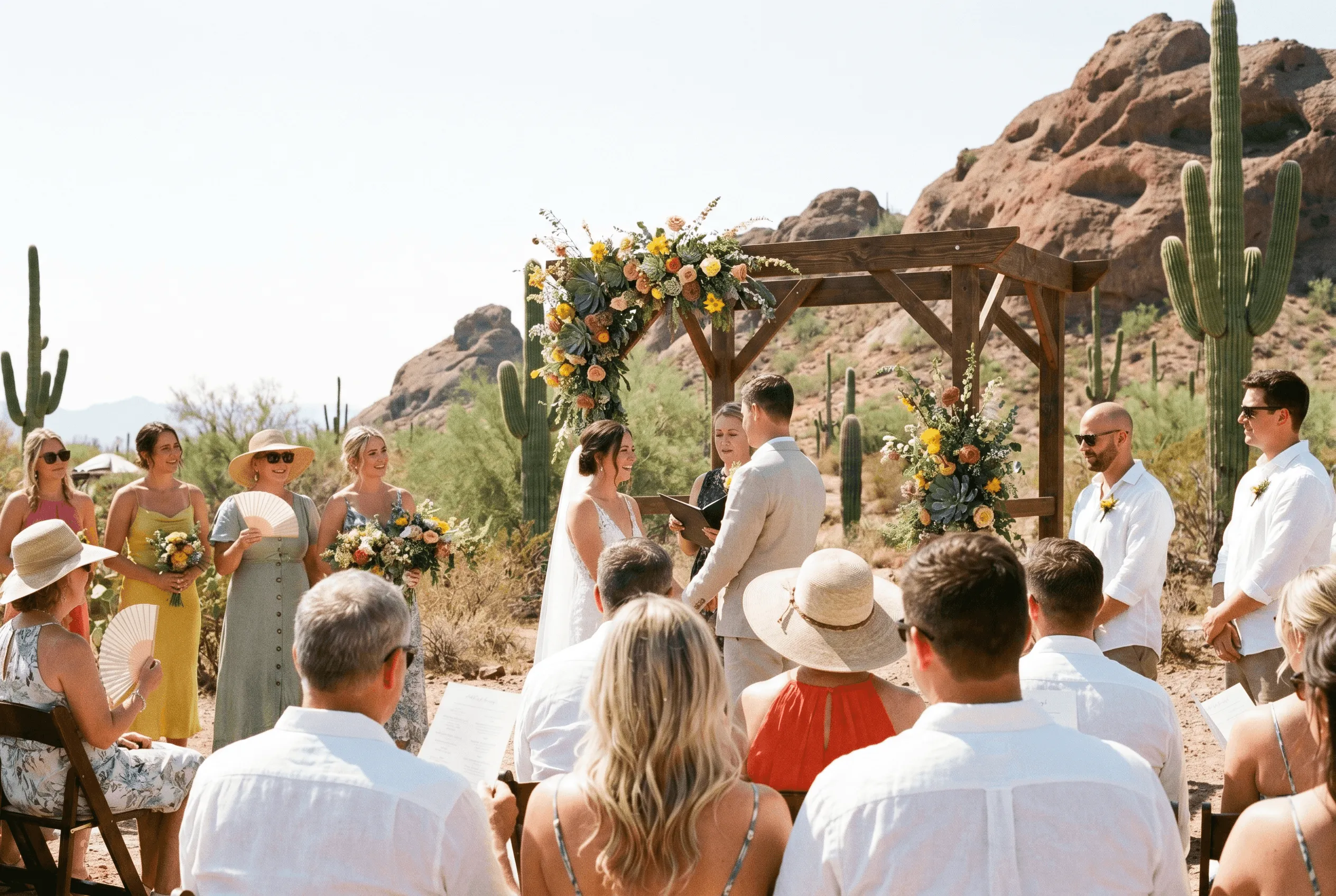 Outdoor ceremony. Arizona heat. The kind of event where you wear what you want and nobody apologises for the weather.
